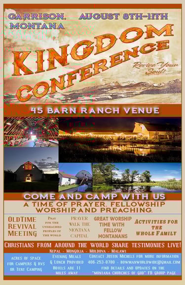 The annual Kingdom Conference is a way to share the Good New of Jesus. It's all about the Kingdom! We aren't concerned about adding to our numbers, we are wanting to add souls to the KINGDOM OF GOD. God will lead them to the Church Family that they need, but most importantly, they need to be BORN AGAIN!